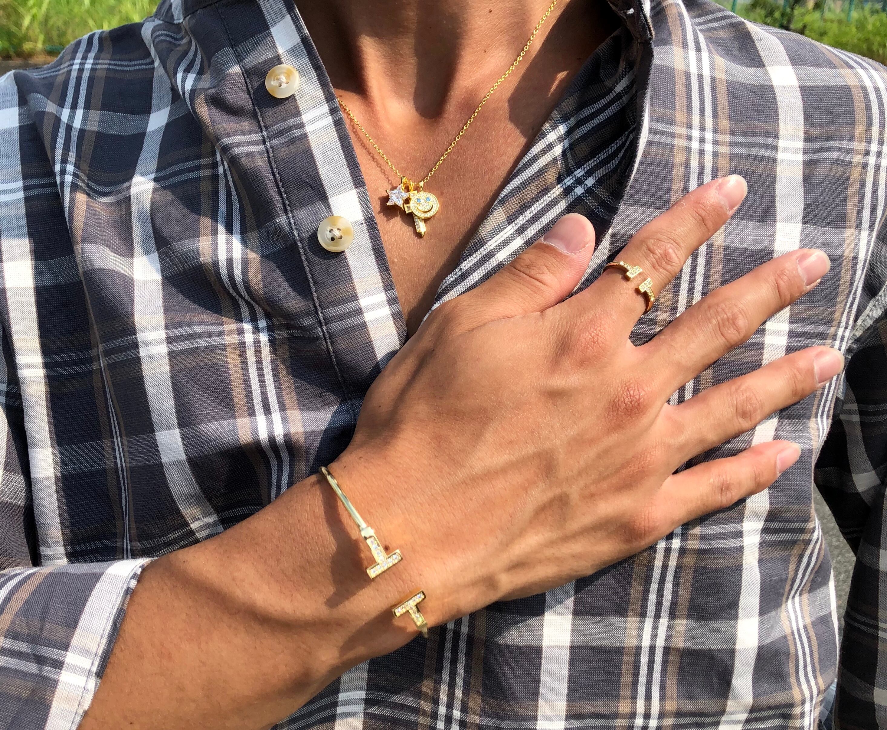 このブレスレットは開閉式では無く、自由に広げれるので男女共にお楽しみ頂けます。