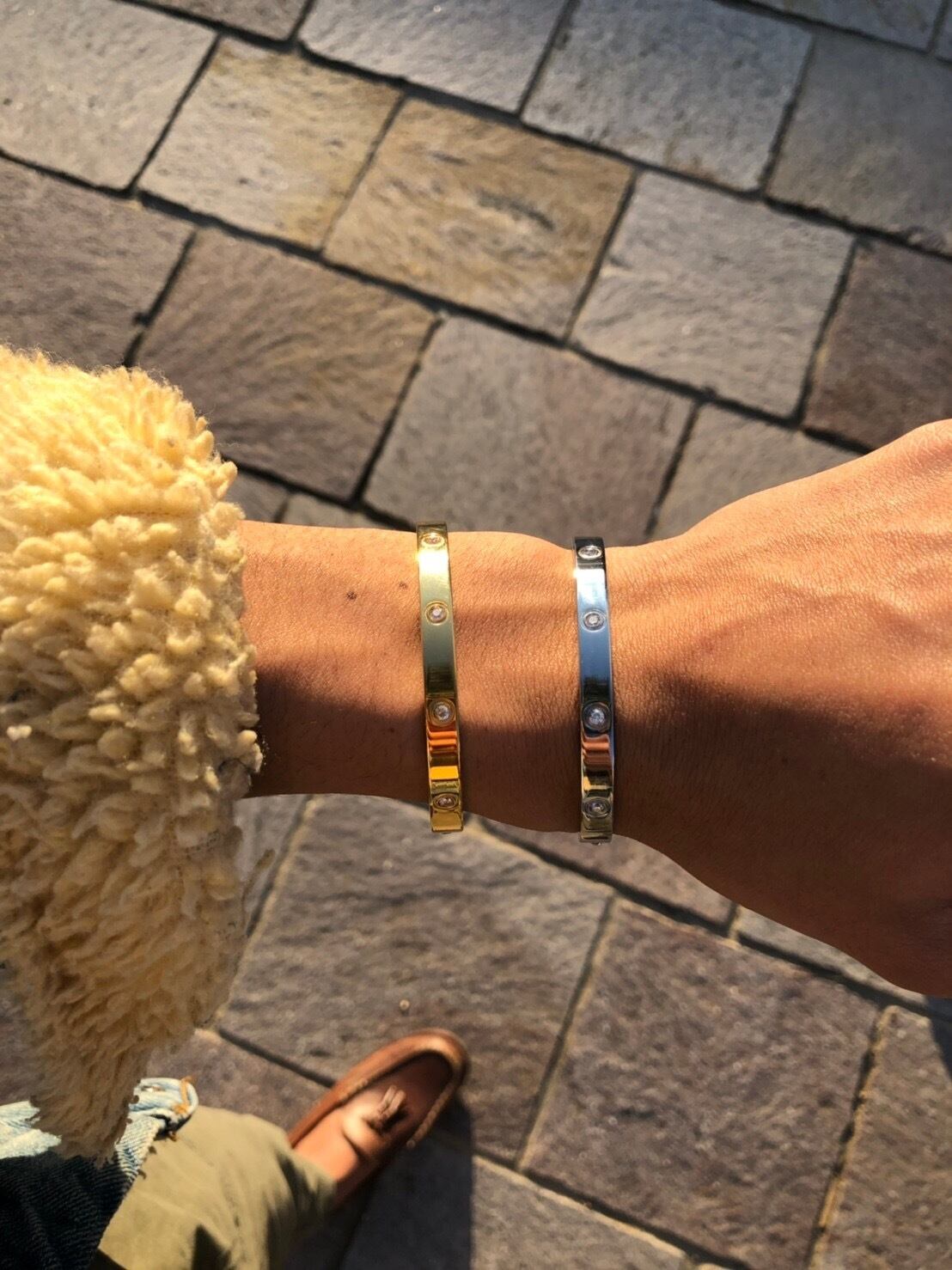 職人の手によってコーティングされたブレスレットの中にジルコニアを埋め込みとても綺麗に輝かせています。